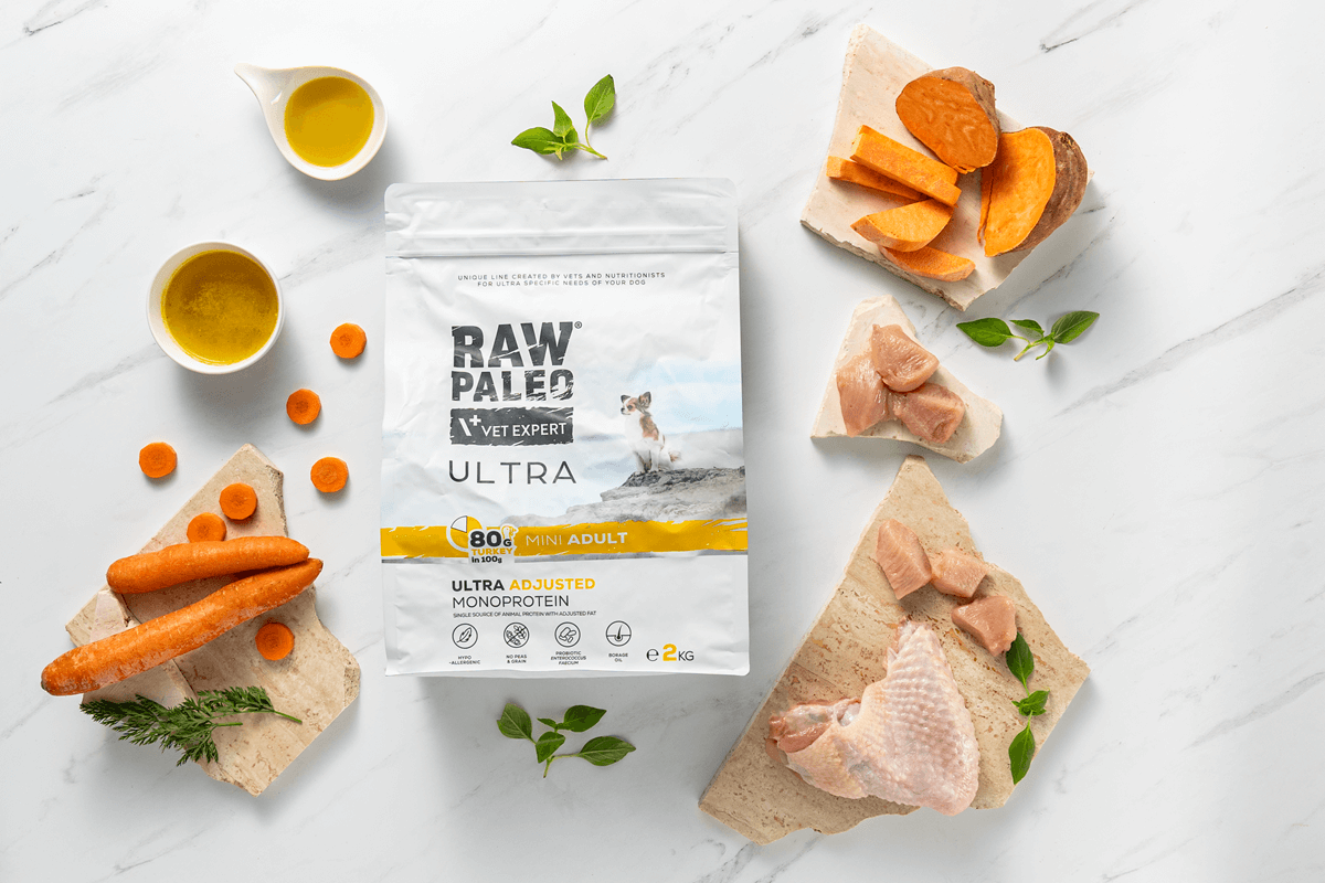 O: Dla psa z alergią najlepsza będzie dieta „wyciszająca”, która odciąży układ immunologiczny. Szukaj formuł monobiałkowych (jedno źródło białka) oraz bezzbożowych i bez grochu, takich jak RAW PALEO ULTRA Monoprotein.