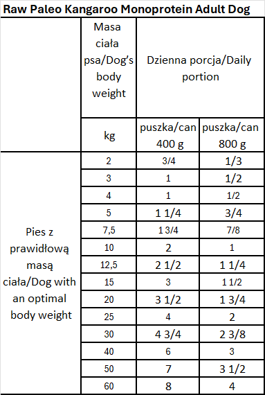 RAW PALEO Kangaroo Monoprotein Adult Dog to pełnoporcjowa karma dla psów dorosłych (powyżej 1. roku życia).